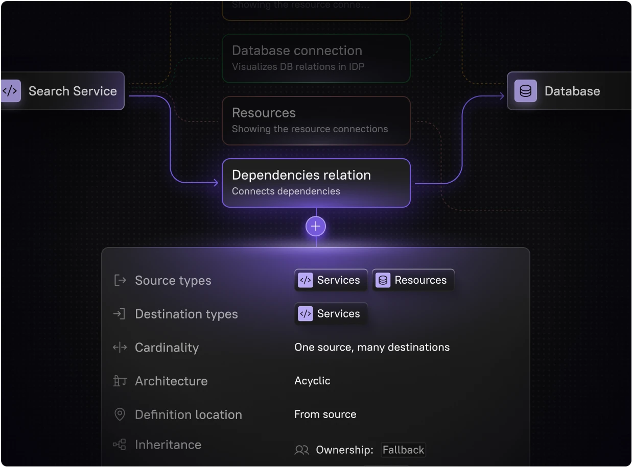 Build custom, multi-level relationship graphs with configurable cardinality and inheritance. Understand dependencies & relationships and drill down across teams and entities with confidence.